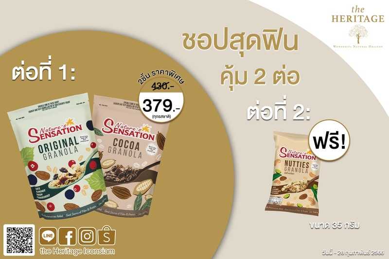 ร้าน เดอะเฮอริเทจ จัดโปรชอปสุดฟิน คุ้ม 2 ต่อ กับเนเจอร์ เซ็นเซชั่น กราโนล่า ตั้งแต่วันที่ 1 – 28 กุมภาพันธ์ 256608/02/2023PR News