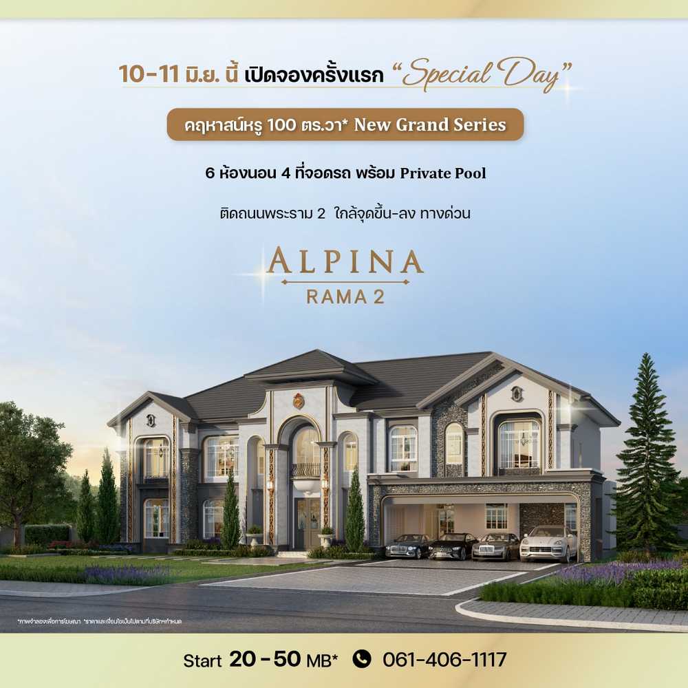 “เฟรเซอร์ส พร็อพเพอร์ตี้ โฮม” ชวนสัมผัสที่สุดของการใช้ชีวิต ต้นแบบของความหรูหราสง่างาม กับโครงการ “อัลพีน่า พระราม 2” (ALPINA Rama 2) คฤหาสน์หรู 100 ตร.วา* พร้อม Private Pool ติดถนนพระราม 2 ใกล้ทางด่วน เปิดจองครั้งแรก 10 – 11 มิ.ย. นี้30/05/2023PR News