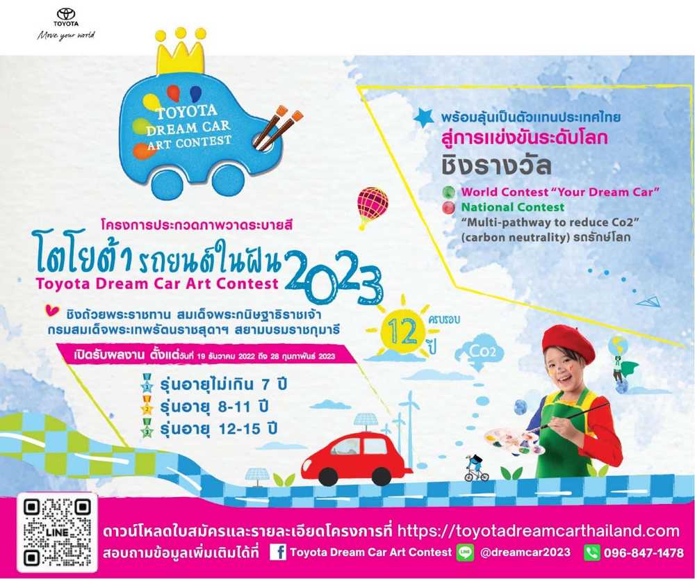 ปลุกไฟฝันจิตรกรตัวน้อยประกวดวาดภาพ “โตโยต้ารถยนต์ในฝัน 2023” ชิงถ้วยพระราชทาน