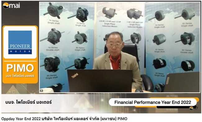 PIMO-ไพโม่ ตั้งเป้ารายได้ปี 66 โต 5-10% จากปี 65 รับอานิสงส์ออเดอร์ BLDC ช่วยหนุน พร้อมก้าวไปข้างหน้าอย่างมั่นคง23/12/2022PR News