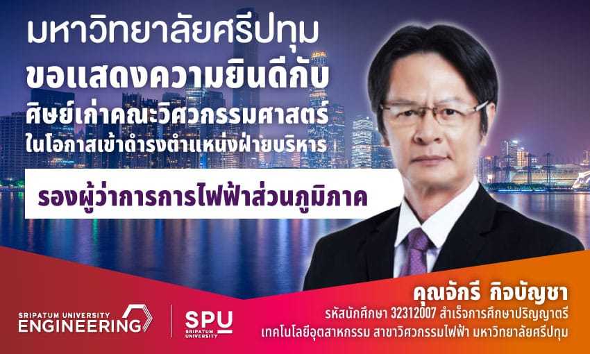 ขอแสดงความยินดี! ศิษย์เก่าวิศวกรรมไฟฟ้า SPU ได้รับแต่งตั้งดำรงตำแหน่ง รองผู้ว่าการประจำผู้ว่าการ การไฟฟ้าส่วนภูมิภาค15/02/2023PR News