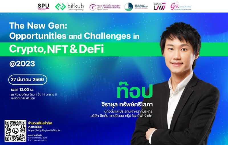 คณะเทคโนโลยีสารสนเทศ ม.ศรีปทุม ขอเชิญร่วมฟังการบรรยายพิเศษ “The New Gen: Opportunities and Challenges in Crypto,NFT&Defi @2023”15/03/2023PR News