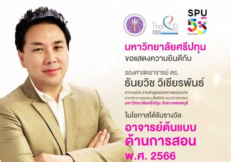 ม.ศรีปทุม ขอแสดงความยินดี กับ รศ.ธันยวิช วิเชียรพันธ์ ที่ได้รับรางวัล “อาจารย์ต้นแบบด้านการสอน พ.ศ. ๒๕๖๖” ของ สป.อว. และคอวท.13/03/2023PR News